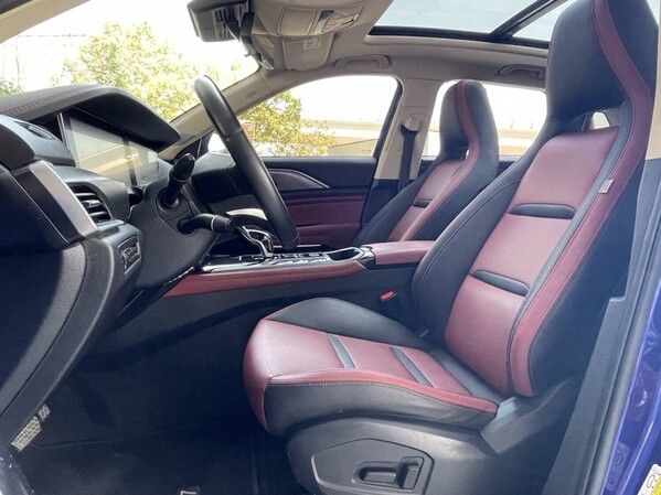 An ergonomic interior with leather trim;